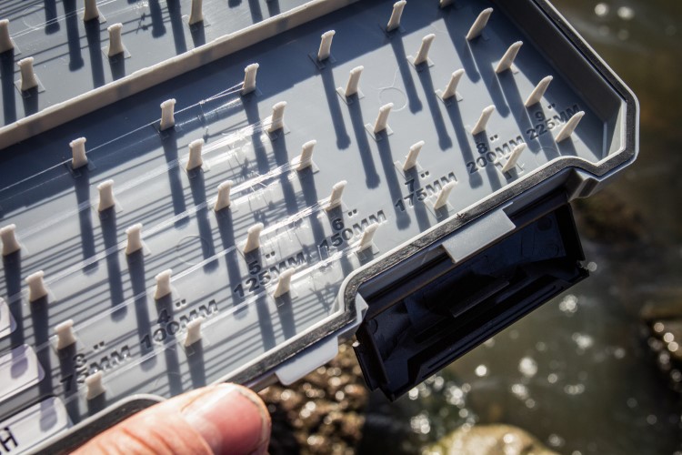 De All-Round Hooklength Box is ideaal voor het bewaren van grote aantallen onderlijnen in lengtes vanaf 7,5 tot 22,5 cm. De capaciteit is aanzienlijk, de doos is voorzien van pennen waarop tot maximaal 20 haken een plaatsje kunnen vinden. Er zijn 20 beschikbare plekken voor onderlijnen tot 22,5 cm lang en 40 posities wanneer de onderlijnen 7,5 of 10 cm lang zijn; dit betekent dat de doos ruimte heeft voor maximaal 800 onderlijnen van 7,5 of 10 cm. De pakking helpt voorkomen dat er water de doos in kan dringen, deze wordt verder afgesloten met twee clips en extra magneten aan de zijkanten. De doos is geconstrueerd van ultra-duurzaam ABS plastic en heeft gefixeerde pennen die perfect gepositioneerd zijn en die je niet in de steek zullen laten. Elk type onderlijn kan duidelijk aangegeven worden met de meegeleverde labels.